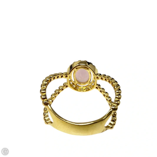 Gold Over Sterling Silver Pavé Halo Pink Quartz Twisted Band Ring, Size: 7