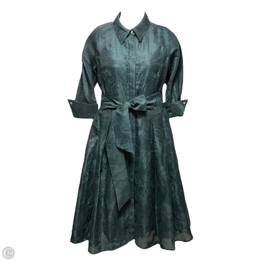 Metallic Jacquard Shirtdress With Floral Print By Rickie Freeman For Teri Jon In Green, Size: 8