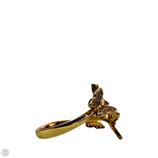 Adjustable Gold Over Sterling Silver CZ Butterfly Ring By FD, Size: 7