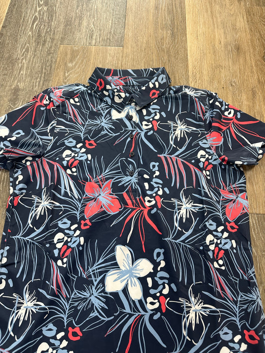 Navy Athletic Top Short Sleeve Fabletics, Size L