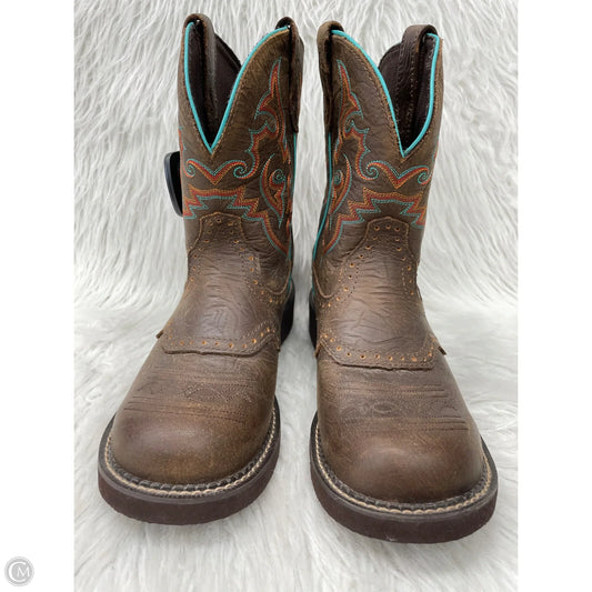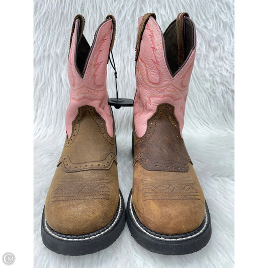 Boots Western By Justin In Brown & Pink, Size: 9