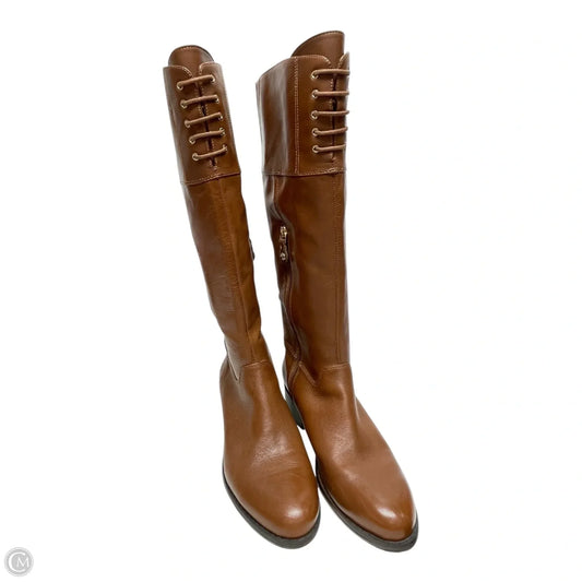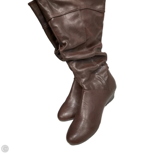 Boots Knee Heels By Clothes Mentor In Brown, Size: 9