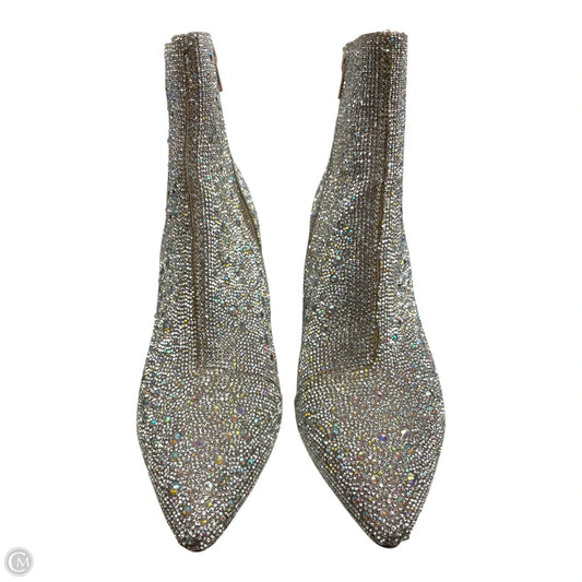 Boots Ankle Heels By Betsey Johnson In Silver, Size: 10