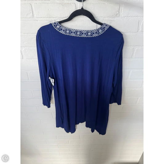 Top 3/4 Sleeve By Adrianna Papell In Blue & White, Size: 1x