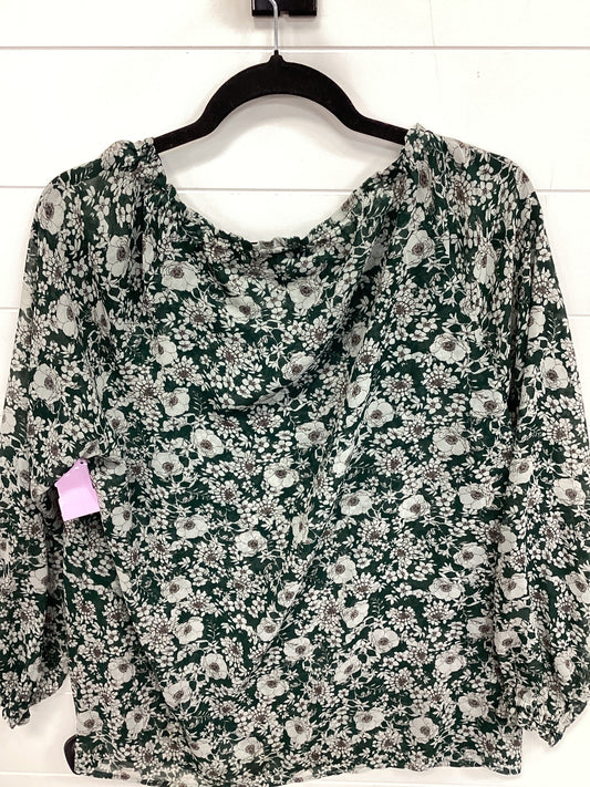 Top Long Sleeve By Cabi In Green & Grey, Size: M