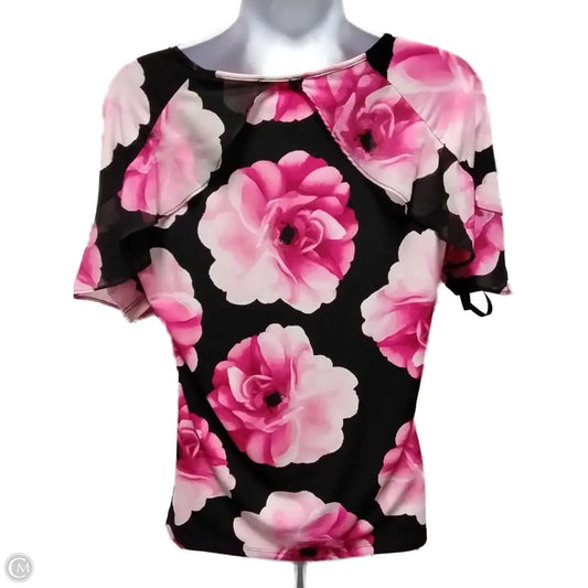 Blouse Short Sleeve By Calvin Klein In Black & Pink, Size: M