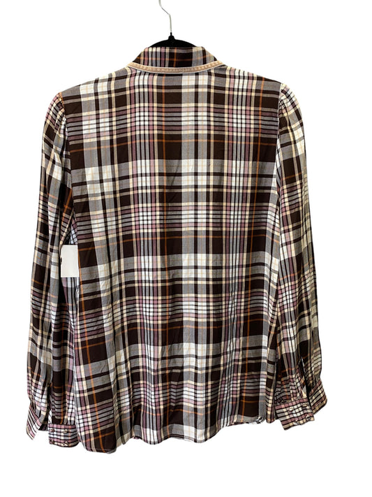 Blouse Long Sleeve By Chicos In Checkered Pattern, Size: S