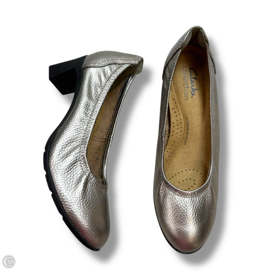 Shoes Heels Block By Clarks In Silver, Size: 7
