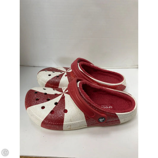 Shoes Flats By Crocs In Red & White, Size: 11