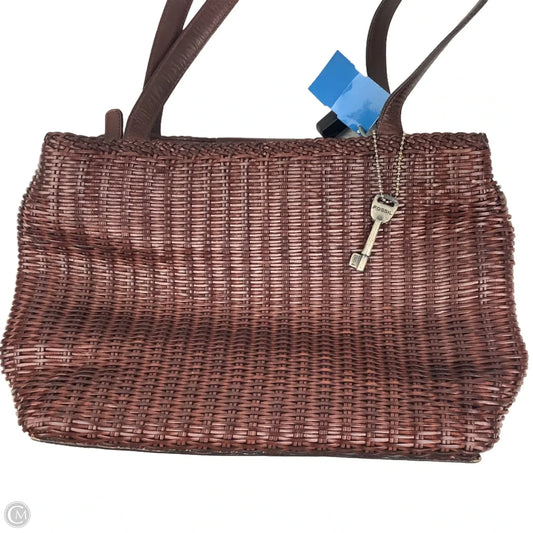 Handbag Leather By Fossil In Brown & Cream, Size:Large