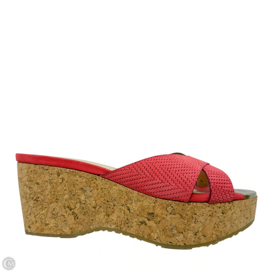 Prima Cork Wedge Slide Sandals Luxury Designer By Jimmy Choo In Coral, Size: 7.5