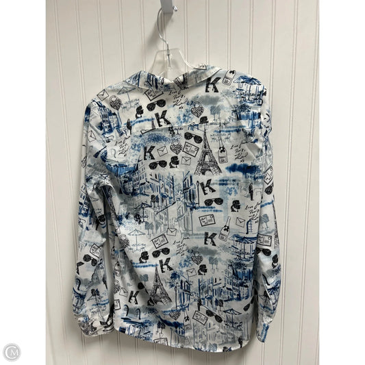 Top Long Sleeve Designer By Karl Lagerfeld In Blue & White, Size: S