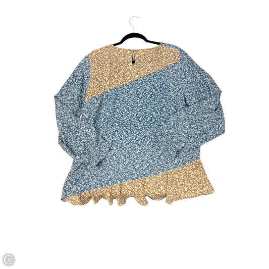 Blouse Long Sleeve By Logo In Blue & Cream, Size: Xl