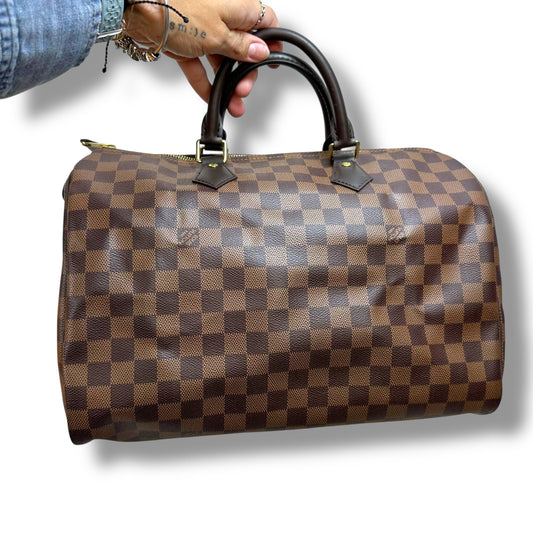 Speedy 35 Handbag Luxury Designer By Louis Vuitton, Size: Medium