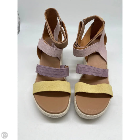 Sandals Heels Wedge By Sorel In Pink & Yellow, Size: 9