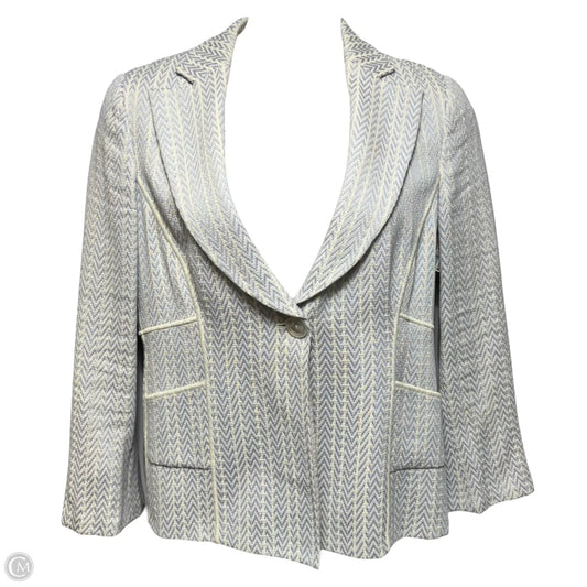 Cotton & Linen Blazer Luxury Designer By Armani In Blue & Cream, Size: 16