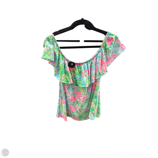 Top Short Sleeve Designer By Lilly Pulitzer In Green & Pink, Size: L