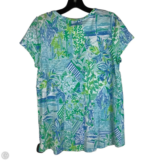 Top Short Sleeve Designer By Lilly Pulitzer In Blue & Green, Size: L