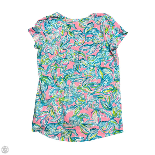 Top Short Sleeve Designer By Lilly Pulitzer In Blue & Pink, Size: S