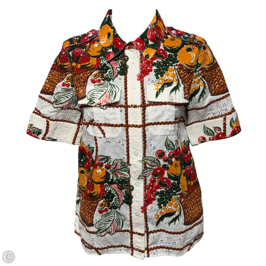 Fruit Basket Print Eyelet Camp Shirt Designer By Tory Burch In Multi-colored, Size: 0