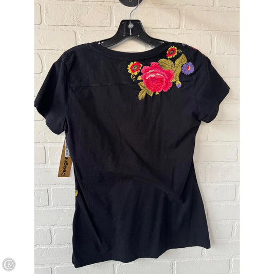 Top Short Sleeve Designer By Johnny Was In Black & Pink, Size: L