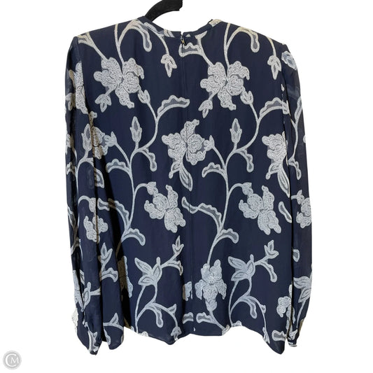 Top Long Sleeve Designer By Neiman Marcus In Blue & White, Size: L