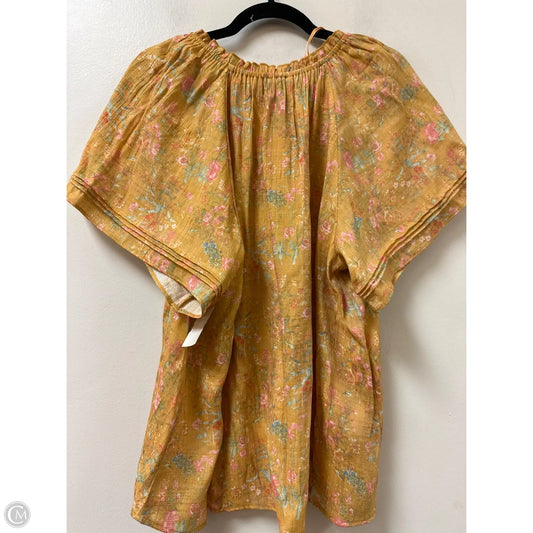 Blouse Short Sleeve By Free People In Green & Yellow, Size: L