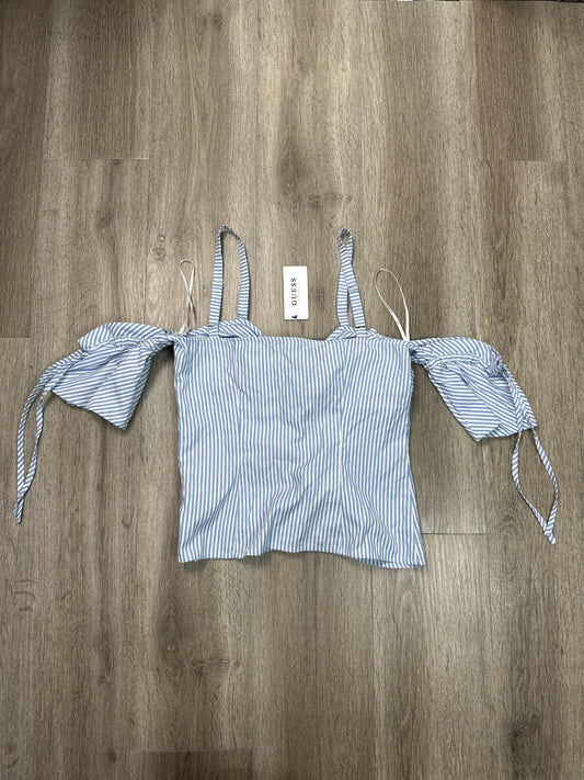 Top Sleeveless By Guess In Blue & White, Size: L
