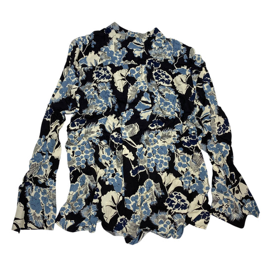 Blouse Long Sleeve By Reiss In Black & Blue, Size: Xs