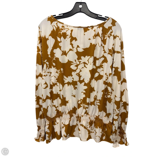 Top Long Sleeve By Ann Taylor In Brown & Cream, Size: M