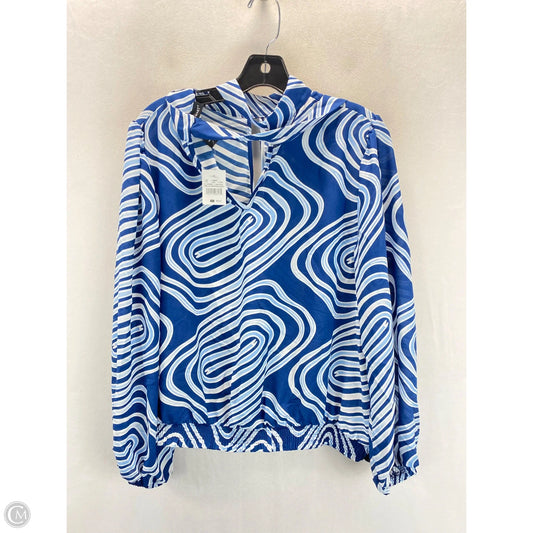 Blouse Long Sleeve By Ashley Stewart In Blue & White, Size: 12