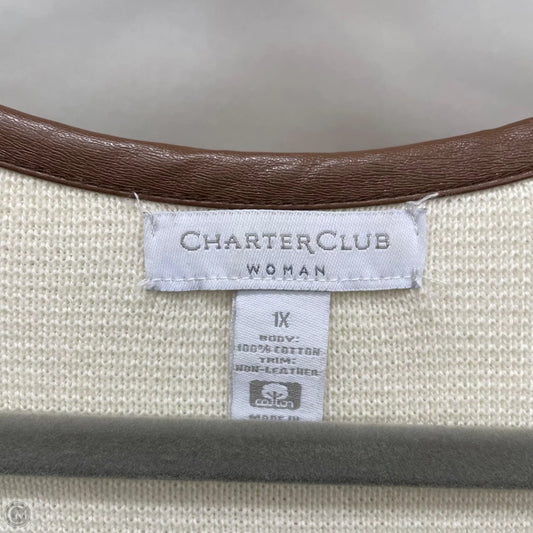 Sweater Cardigan By Charter Club In Blue & Cream, Size: 1x