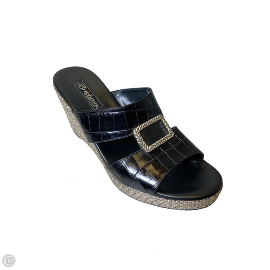 Sandals Heels Wedge By Brighton In Black & Brown, Size: 8.5