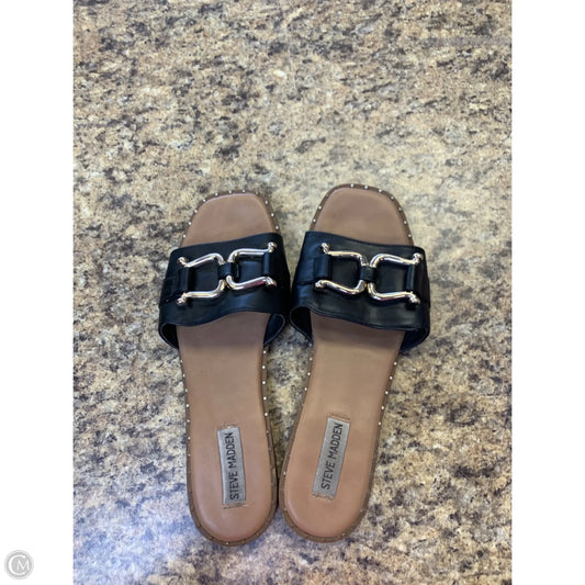 Sandals Flats By Steve Madden In Black & Gold, Size: 10