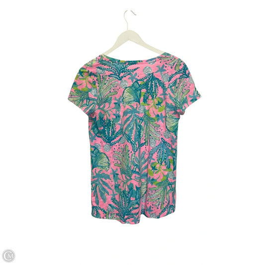 Top Short Sleeve Designer By Lilly Pulitzer In Blue & Pink, Size: S