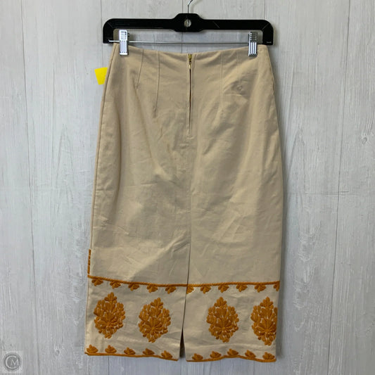 Skirt Midi By Anthropologie In Cream & Orange, Size: Xs
