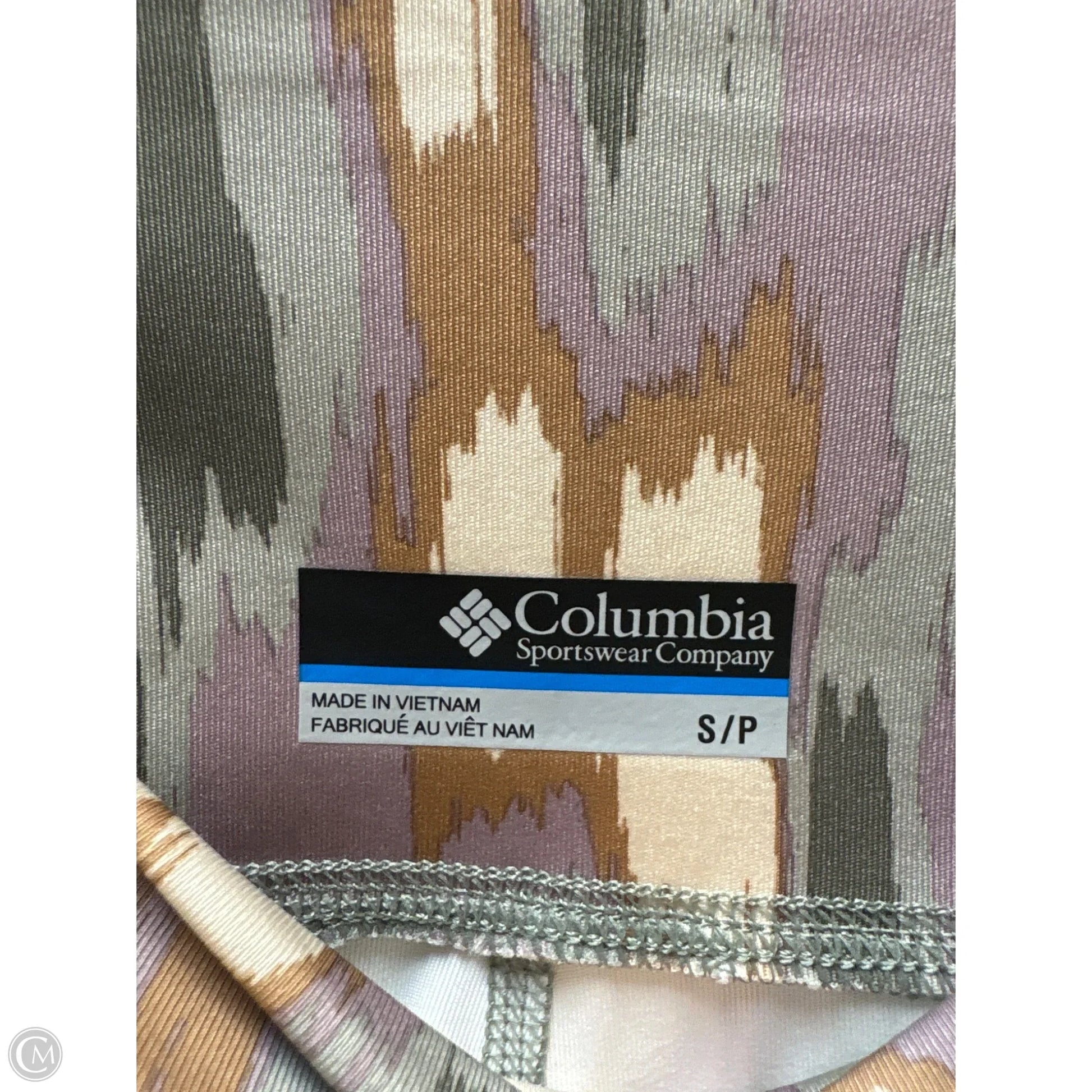 Columbia green athletic leggings, size S, embody performance and style.