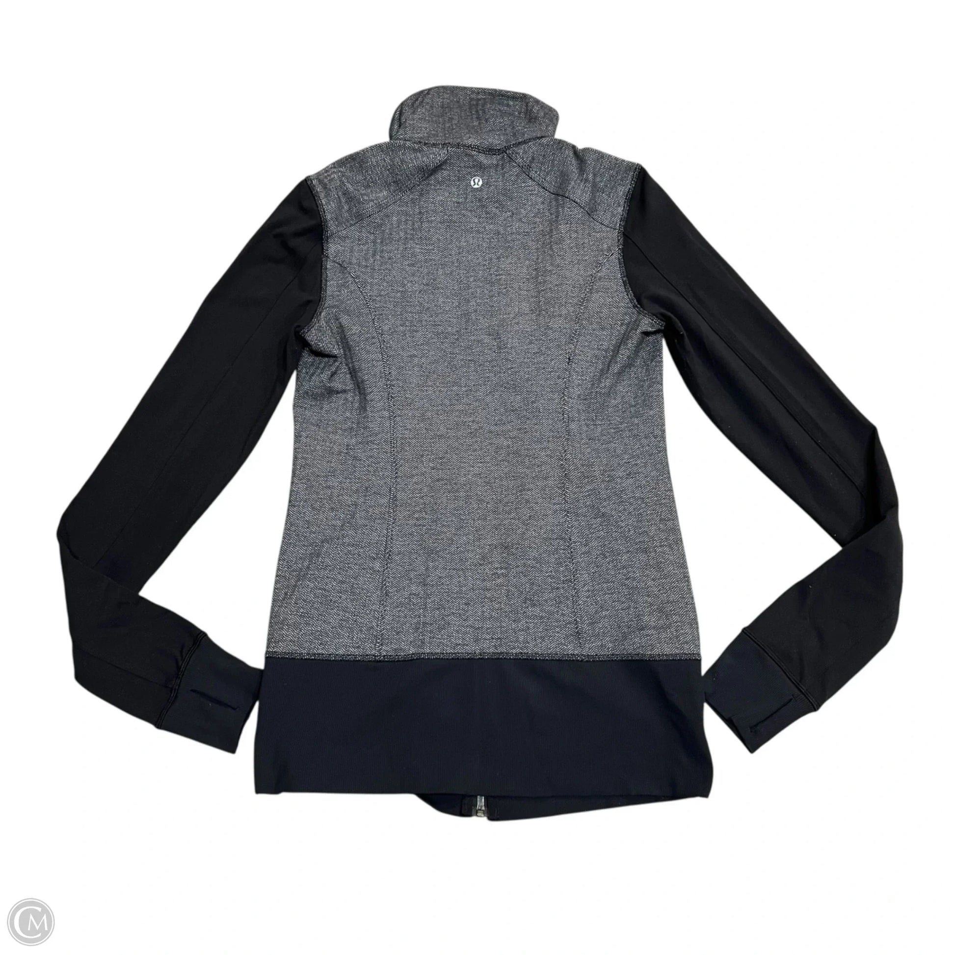 Athletic Top Long Sleeve Collar By Lululemon In Black & Grey, Size: S