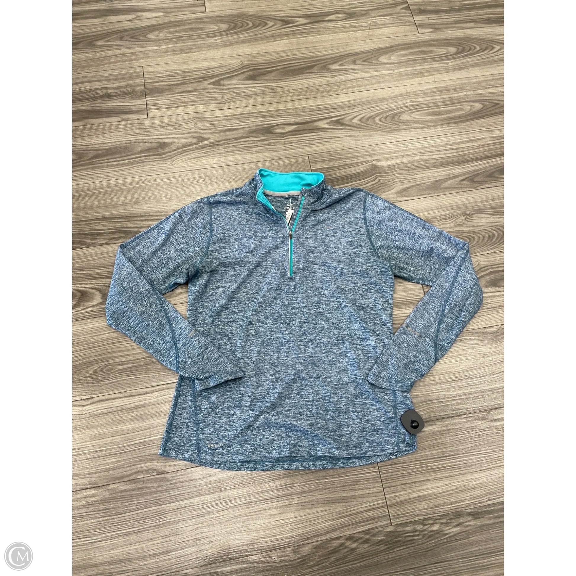 Athletic Top Long Sleeve Collar By Nike In Teal, Size: L