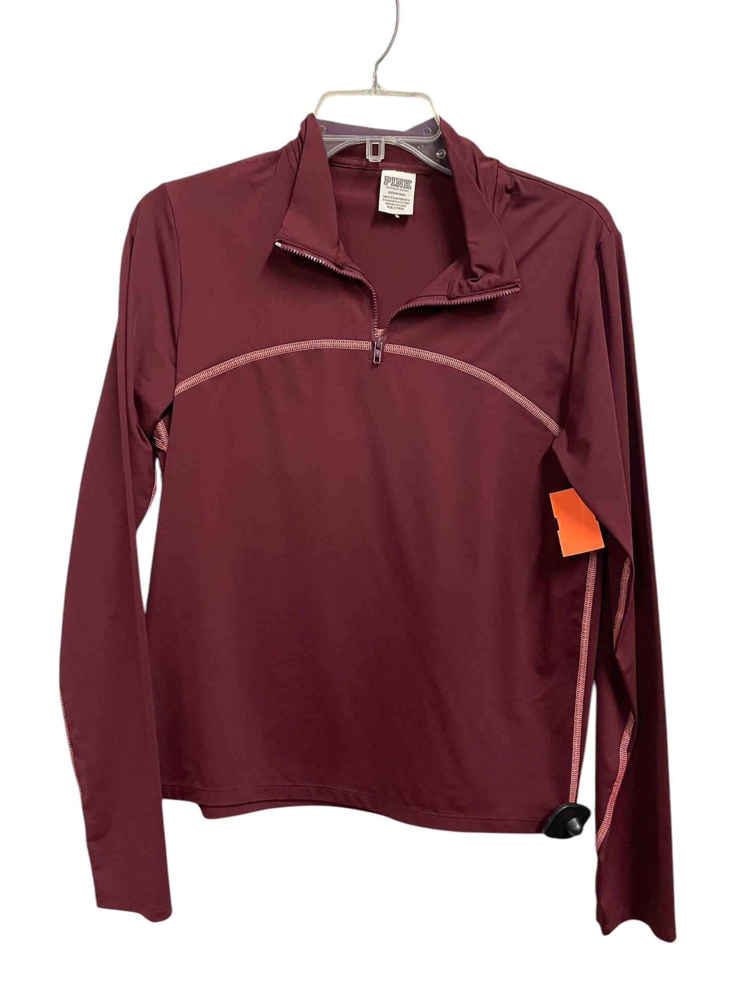 Athletic Top Long Sleeve Collar By Pink In Maroon, Size: L