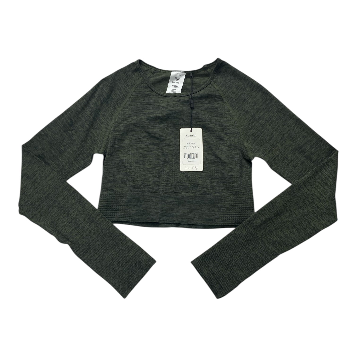 Athletic Top Ls Crewneck By VANTONIA In Green, Size:M