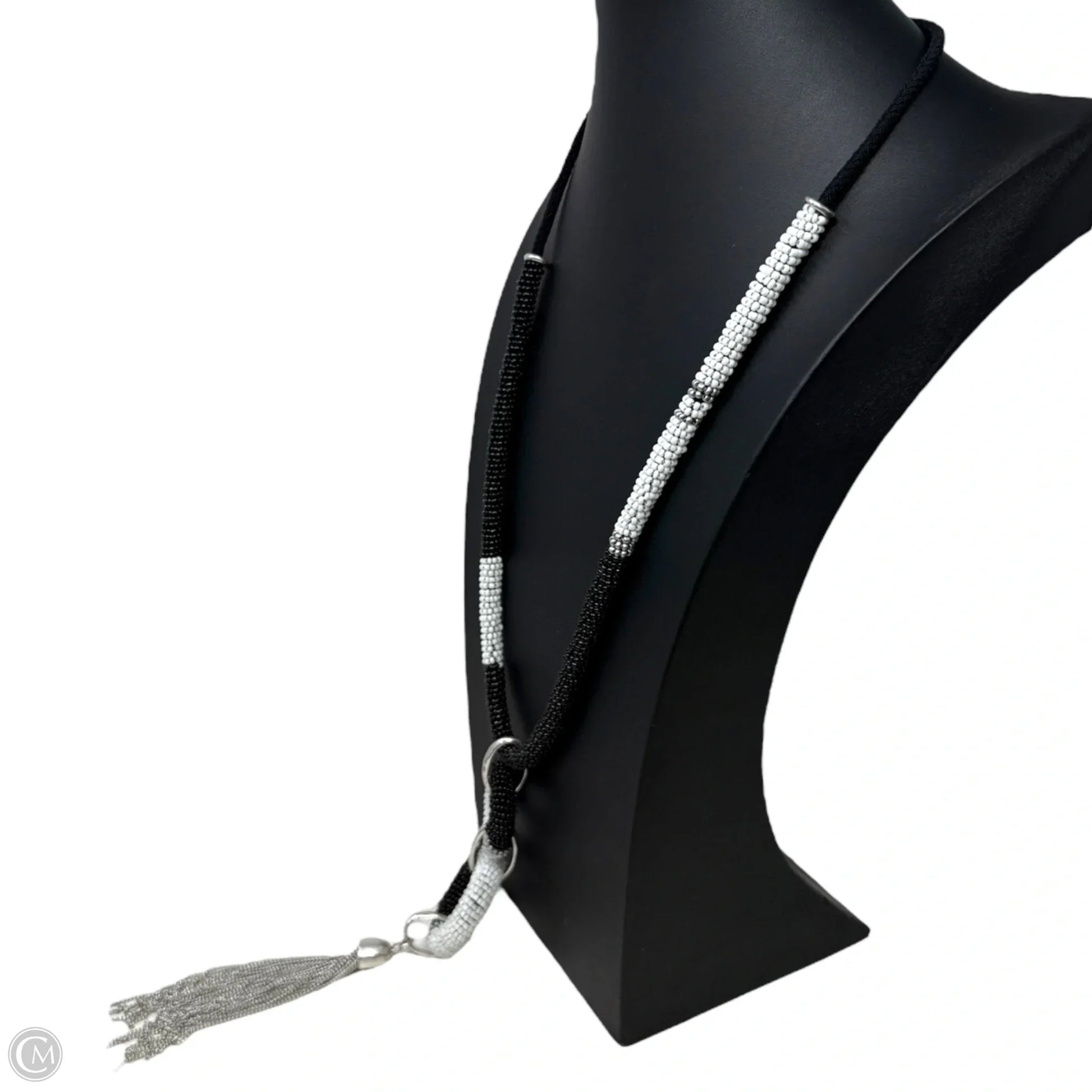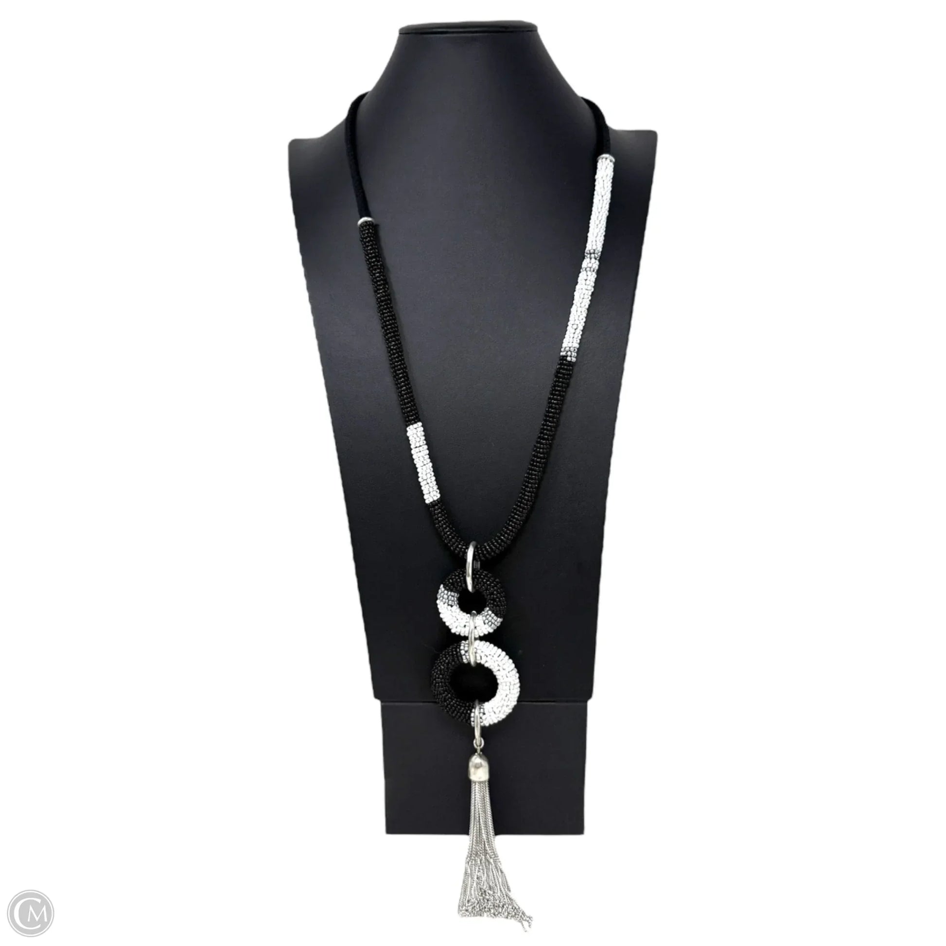 Beaded Double Circle Tassel Necklace In Black & White By Chicos