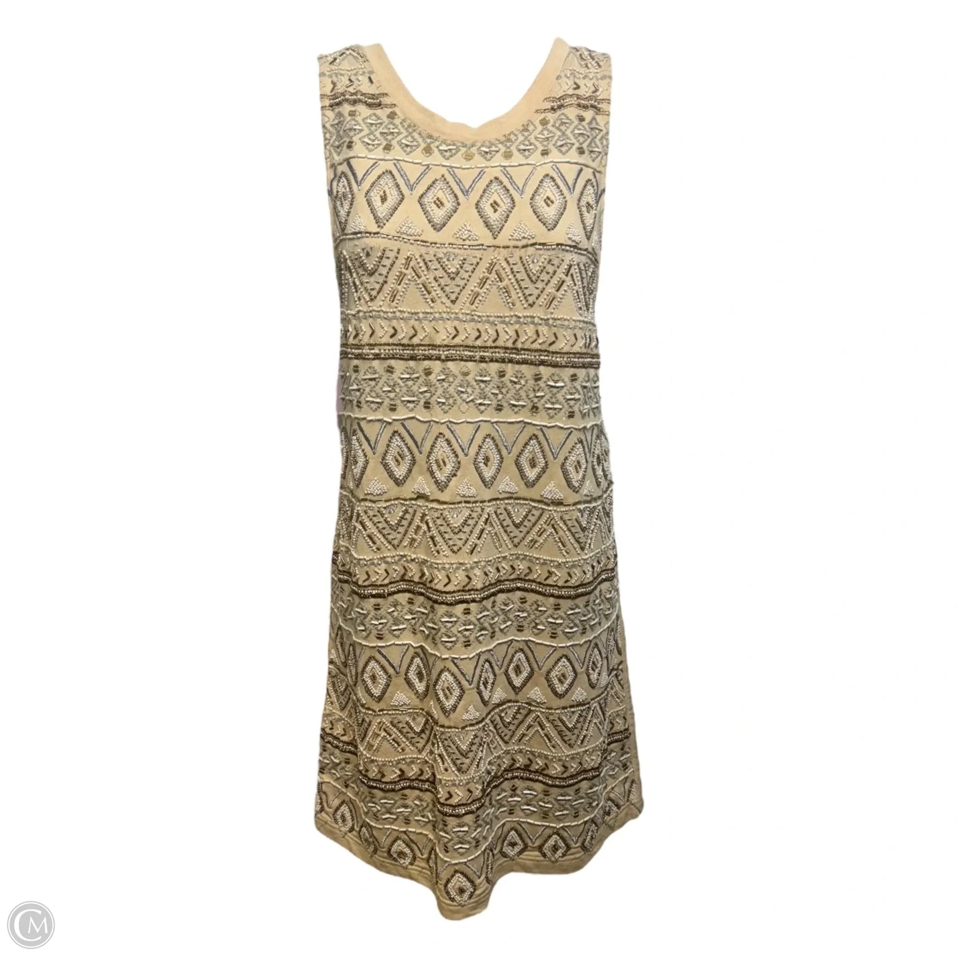 Shimmer in elegance with this Gold Beaded Scoop Back Party Dress. Size S.
