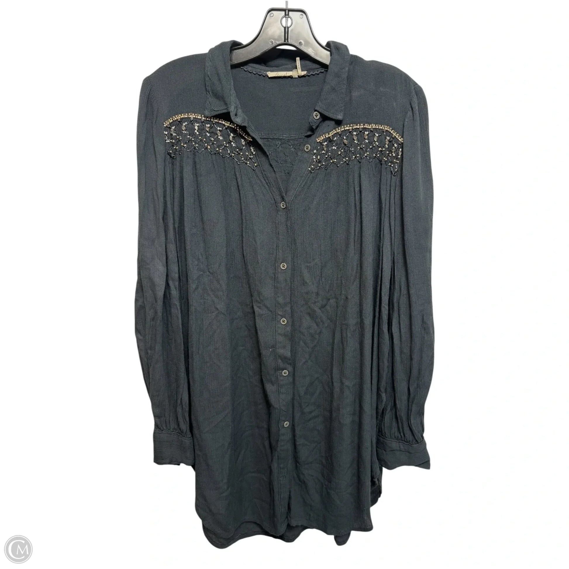Beaded Top Long Sleeve By Floreat In Grey, Size: S