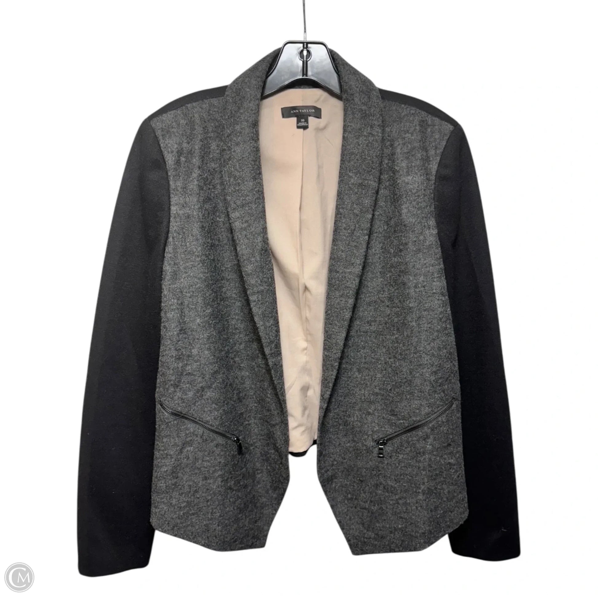 Blazer By Ann Taylor In Black & Grey, Size: 10