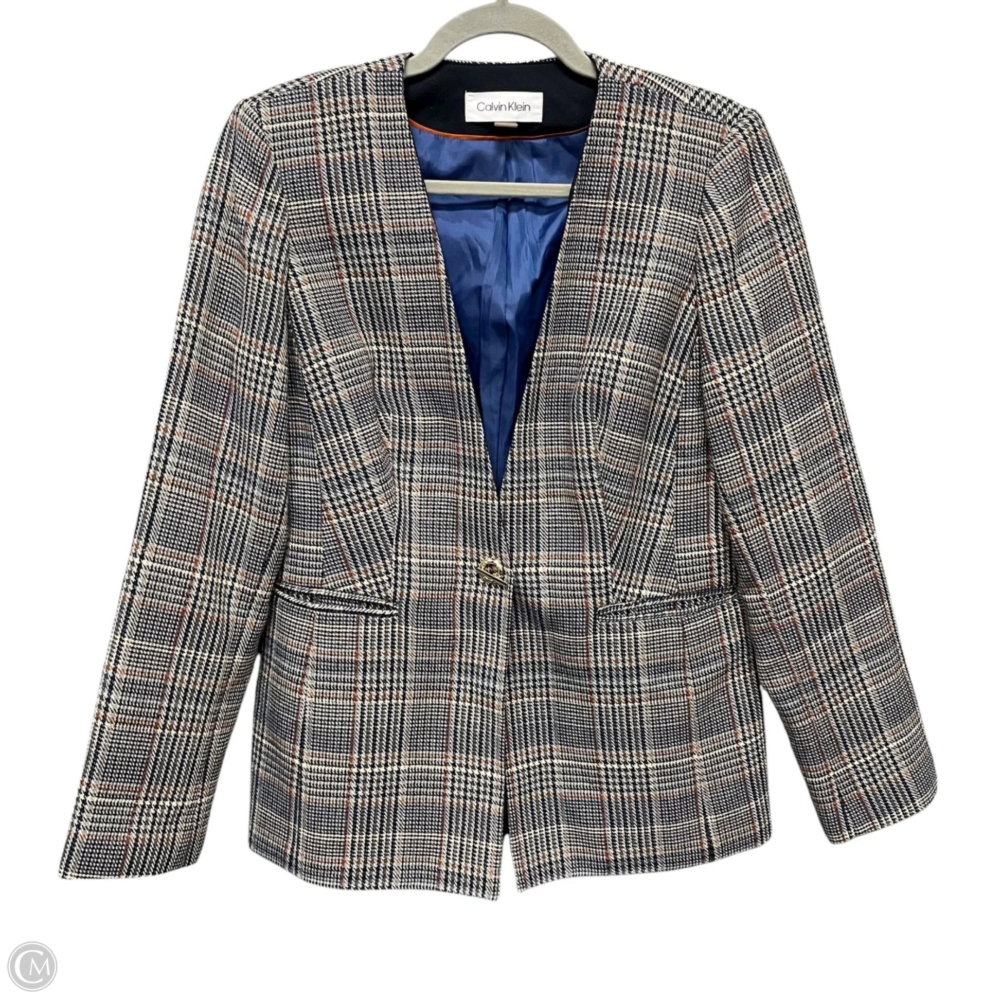 Blazer By Calvin Klein In Plaid Pattern, Size: 6