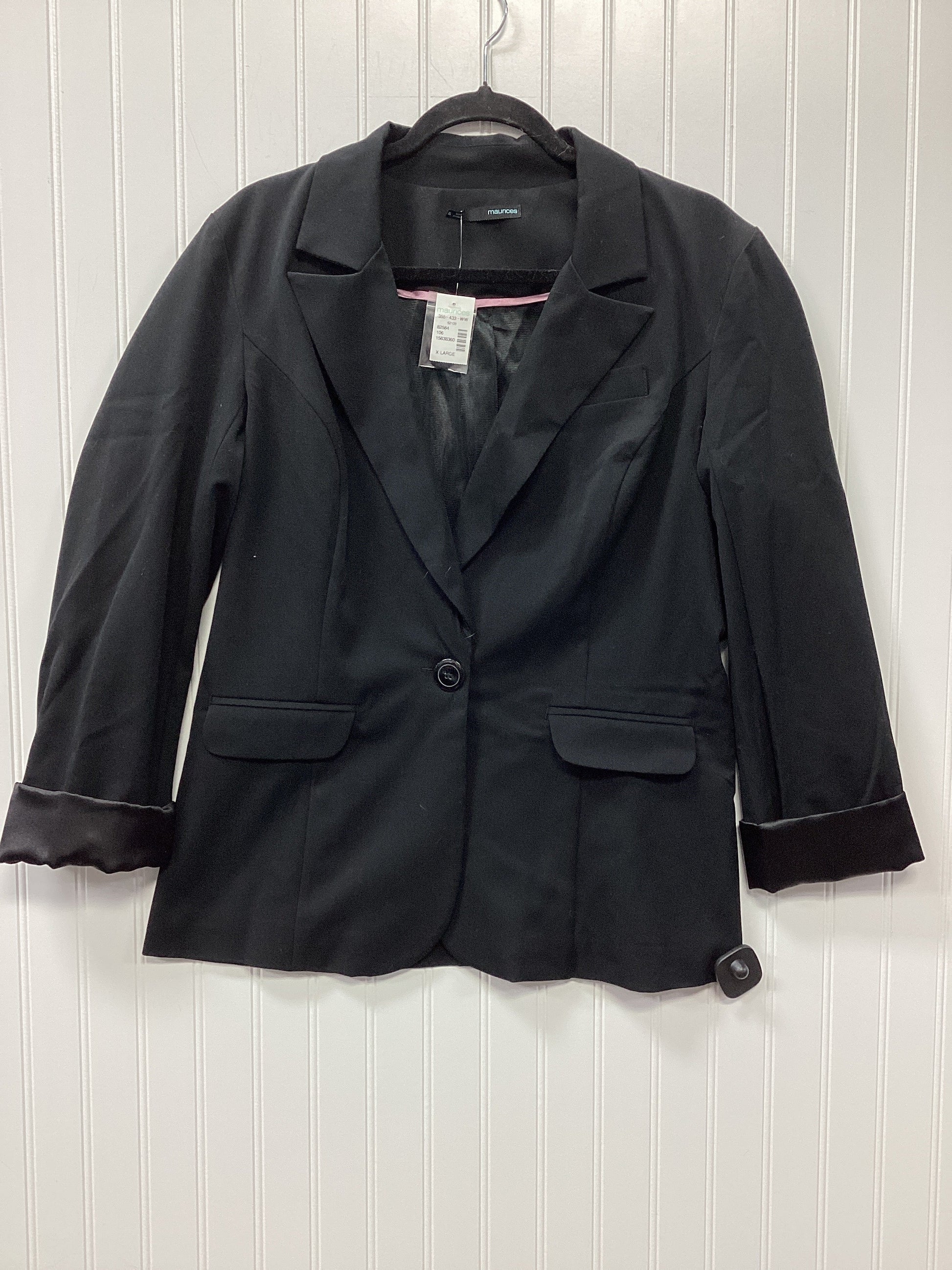 Indulge in sophisticated elegance with this Maurices black blazer in XL, a timeless piece that exudes confidence and style.