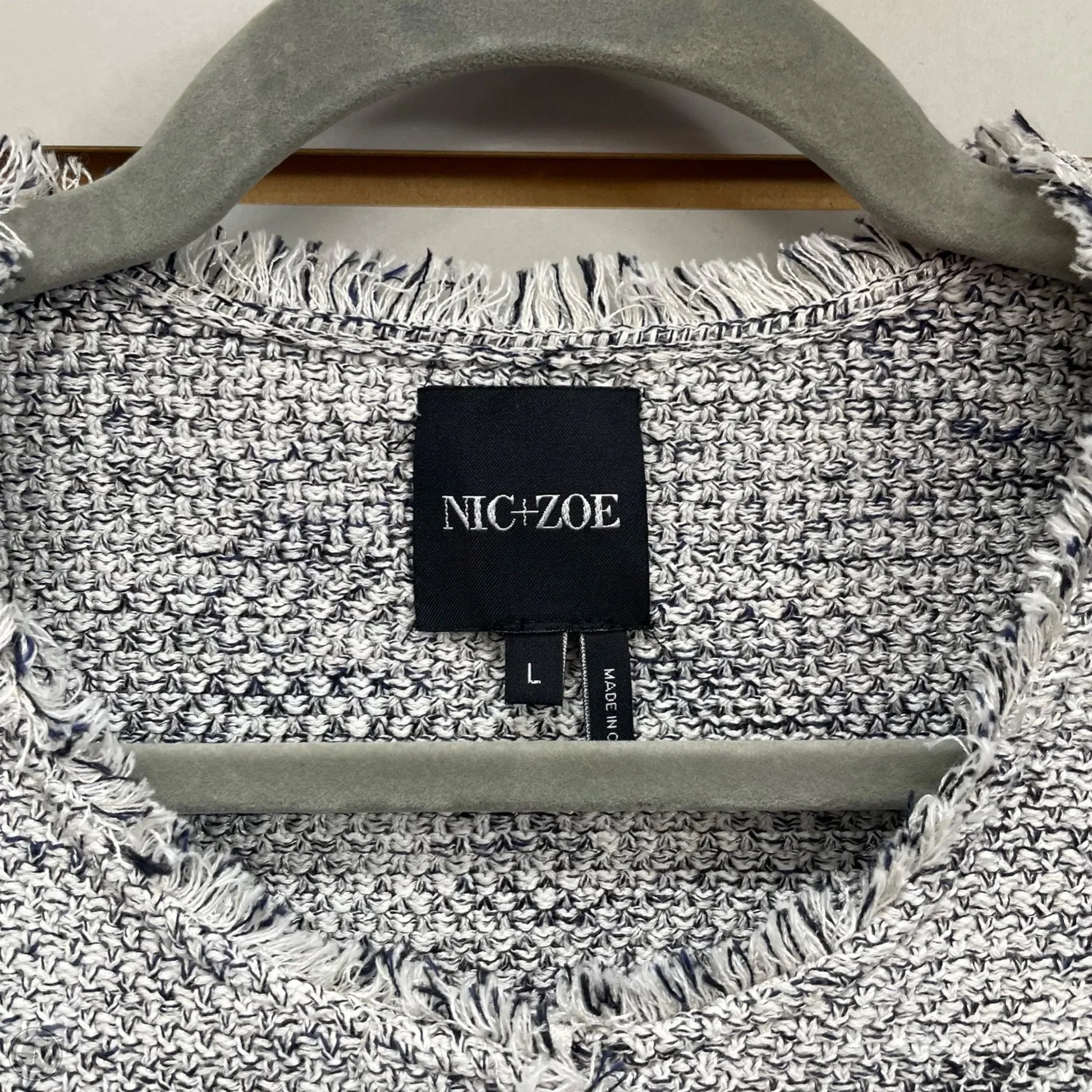 Unleash your inner fashionista with this striking Nic + Zoe Blue & White Blazer in size L. Crafted with quality fabric and a flawless fit, exuding confidence and style effortlessly. Stand out!