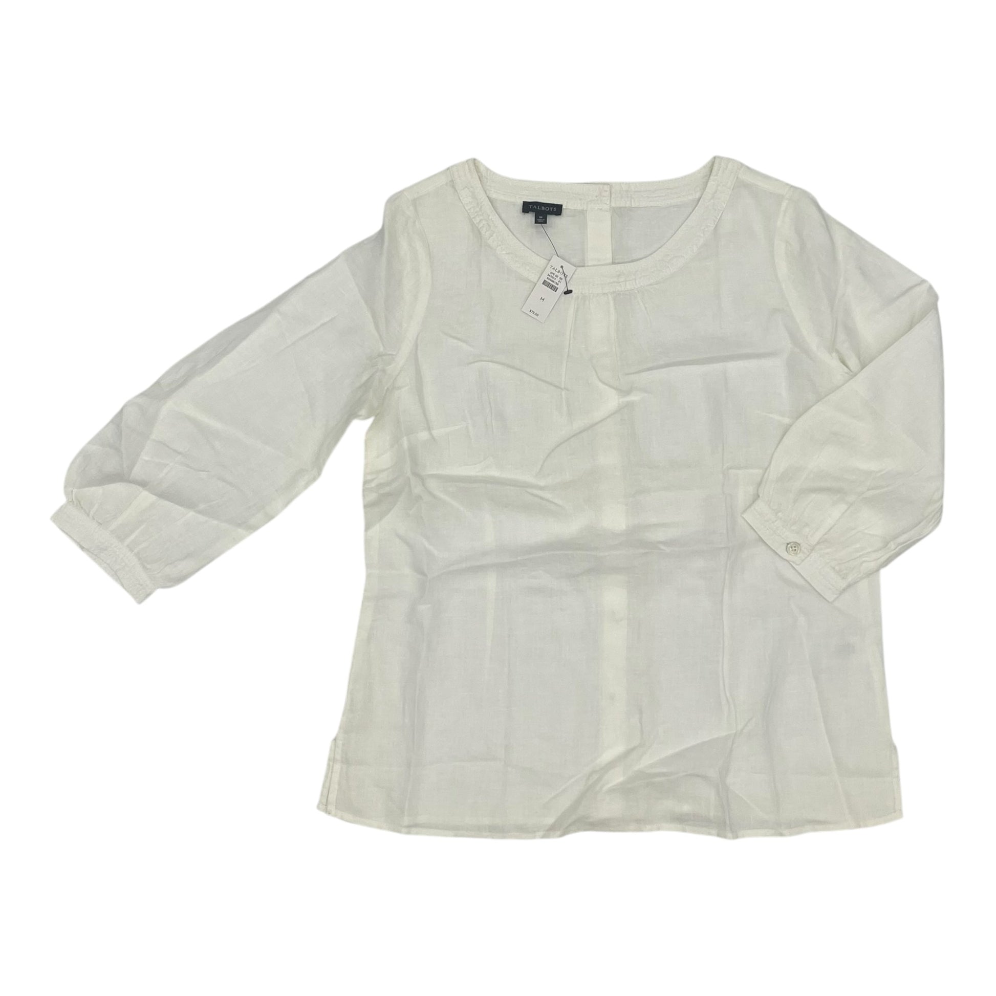 Blouse 3/4 Sleeve By Talbots In Cream, Size:M