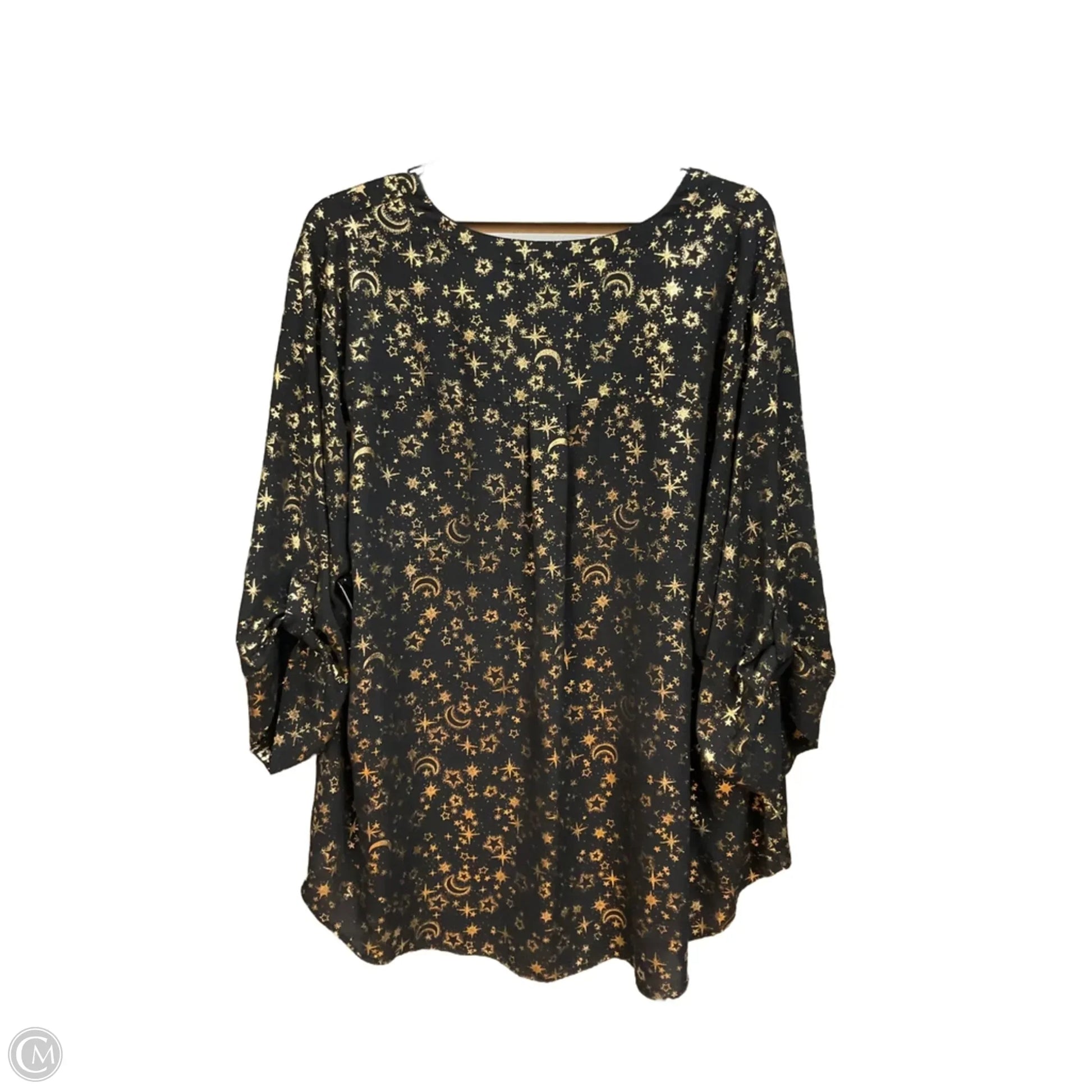 Blouse 3/4 Sleeve By Torrid In Black & Gold, Size: 4x